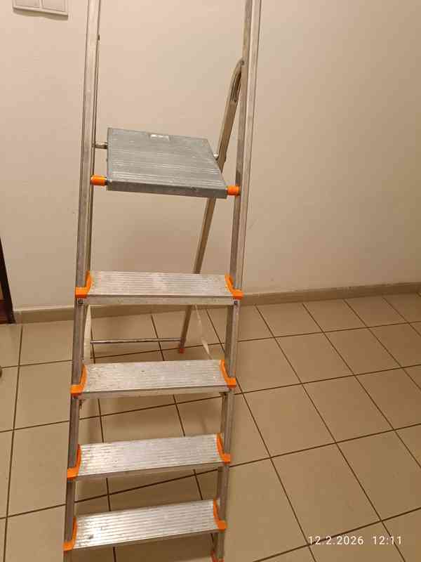 Prodám JEDNOSTRANNÉ HLINÍKOVÉ SCHUDKY, skládací, velmi lehké cca.4 kg,skladné, celk. výška složené vč.madla 175 cm, rozložená plošina na stání ve výši 103 cm, 5 stupňů, protiskluzové patky, vrubované bezpečnostní nášlapy, stabilní a plně funkční. Schůdky jsou používané, nesou běžné známky opotřebení, bez vady, vše drží pevně. Pohodlné přenášení na jiné místo. Vhodné pro:domácí práce ve výškách i pro vyšší stropy, garáž chalupu apod. Nejlépe osobní odběr Plzeň
