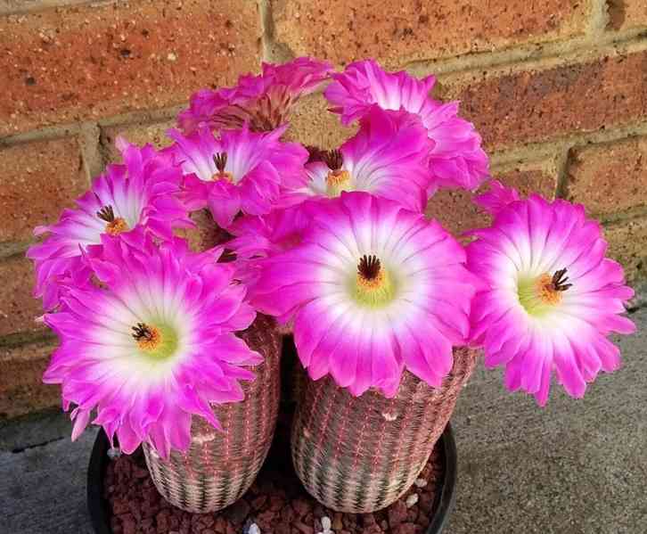 Kaktus Echinocereus pectinatus v. rubrispinus byl nalezen v Mexiku, ve státech Sonora a Chihuahua a je jednou z lokálních forem Echinocereus rigidissimus. Název pochází z řeckého slova Echinos, což znamená ježek a z latinského cereus – svíčka. Tyto rostliny jsou vzpřímené, válcovitého tvaru. Výška kmene může být až 25 cm a šířka v průměru 7 cm. Tento neobyčejně nádherný kaktus, charakteristický svými četnými (až 35 na jedné aerole), vyzařujícími okrajovými trny, o délce 6 – 10 mm, tvořící jakési pásy červené a bílé, je zcela bez centrálních trnů. Obrovské až 10 cm široké květy kvetou narůžověle, purpurově nebo červeně s bílými hrdly. Plody jsou nazelenalé nebo tmavě purpurově hnědé s bílou dužinou, asi 3 cm v průměru. Balení obsahuje 20 semen za 22 Kč. Semena – neoseeds